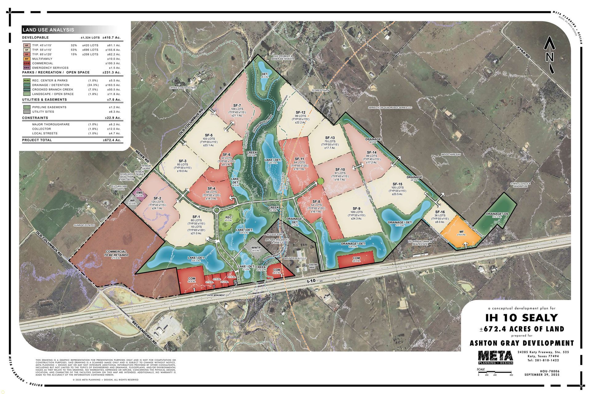 The Brentwood Development is the only tract to be in the Austin County Municipal Management District No. 1. With the benefit of the MMD, we can initiate horizontal construction around Q1 of 2026. The project is comprised of around 311 acres allocated towards residential where we can develop around 1,426 lots. We have allocated around 15 acres for a multi-family site where we plan to build garden-style apartments or a build-to-rent community. We have approximately 28.4 acres that will be used for commercial use as it will be frontage to Interstate-10.
